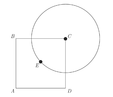 Square ABCD and a circle with center C intersect as shown. If point E is at the center of ABCD and if the radius of circle C is k, then what is the area of ABCD, in terms of k ?