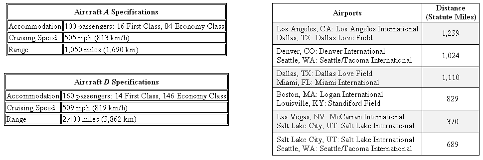 Based on its specifications, which of the following flights can aircraft A make? Indicate all possible flights.