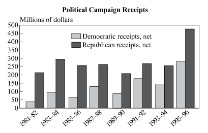- C Republican receipts in 1995-1996 exceeded the total of Democratic receipts for the 10 years from 1981-1990.