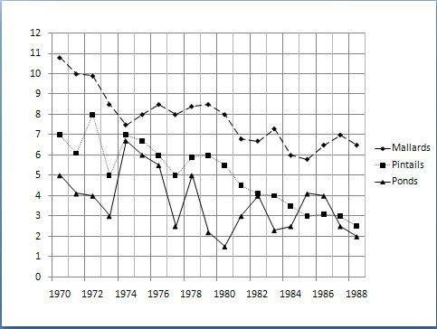 In 1984 the population of pintails was approximately what fraction of the mallard population?