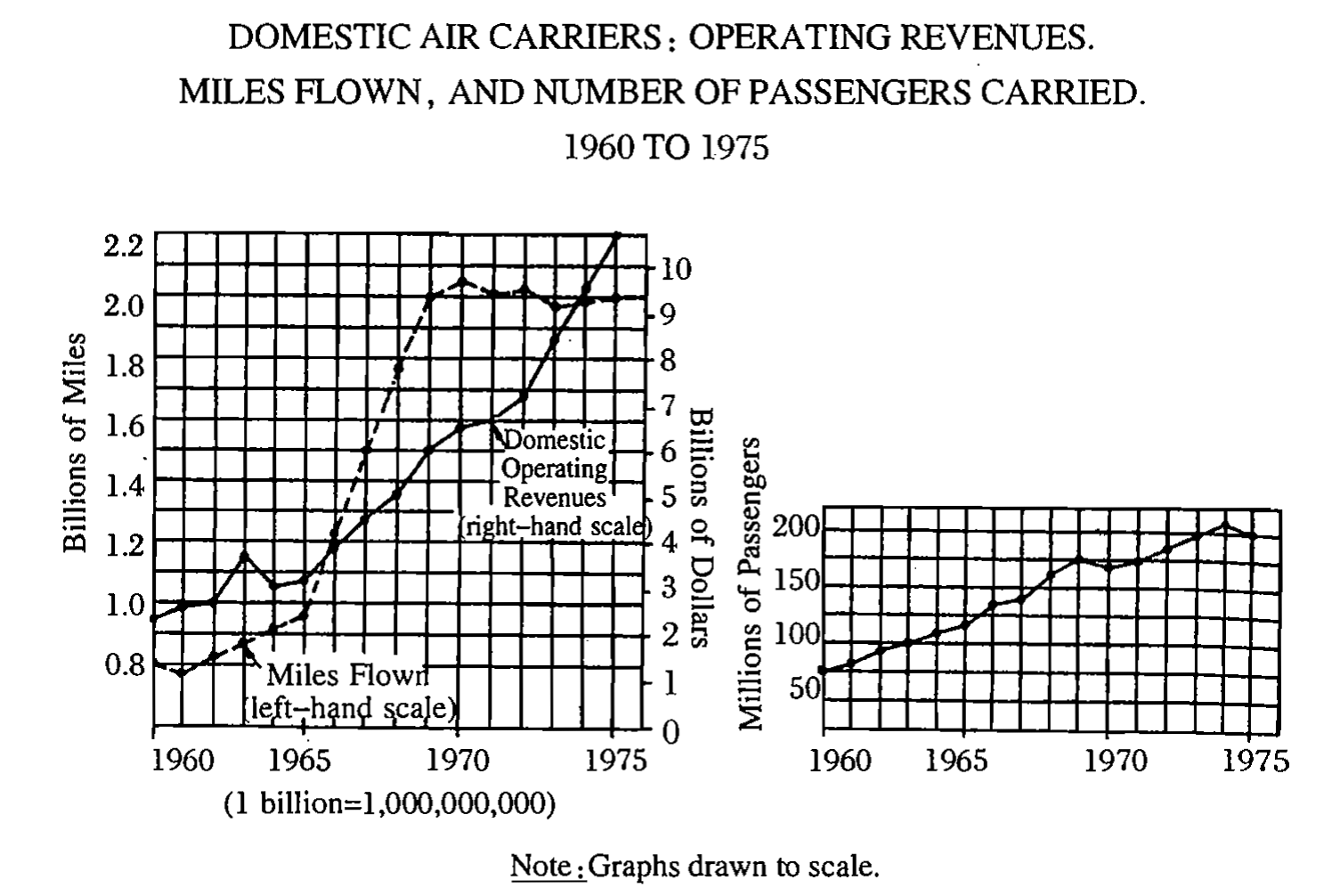 In 1965 how many billions of miles were flown by domestic air carriers?