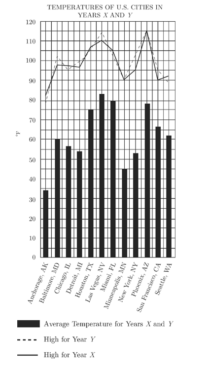 For how many of the cities shown was the highest temperature in Year Y greater than or equal to the highest temperature in Year X ?