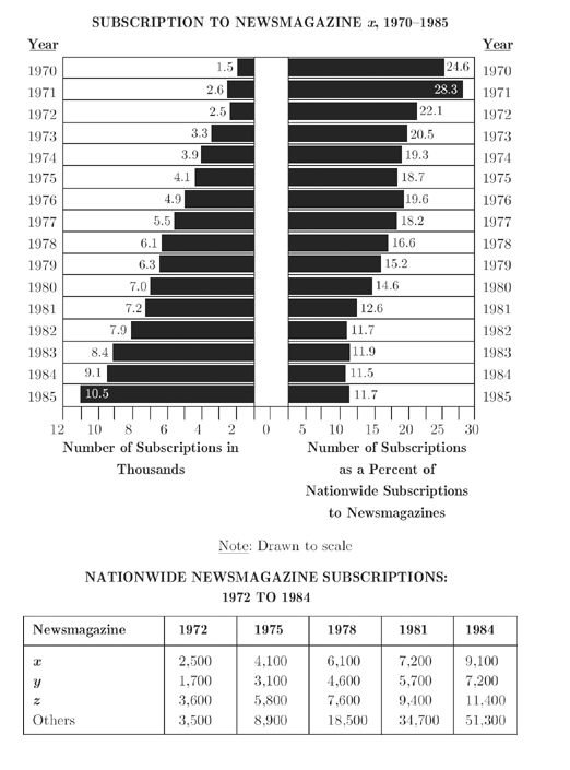 For the year in which Newsmagazine x accounted for 14.6 percent of nationwide newsmagazine subscriptions, what was the number of subscriptions to Newsmagazine x?